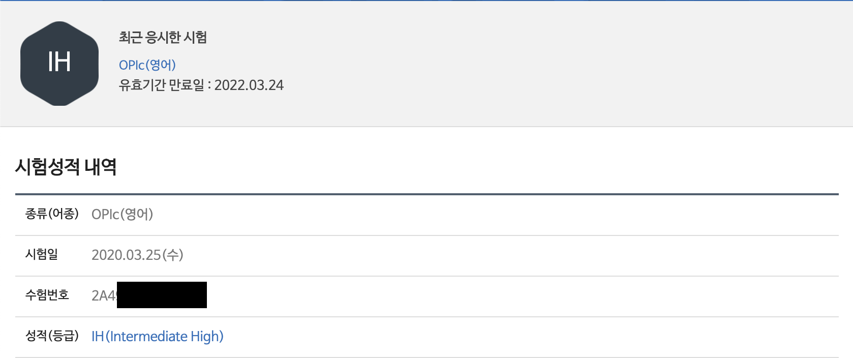 2020년 3월!! 올해 1학기는 제 막학기고, 사실 소프트웨어를 복전하면서 IT서비스 기획, 개발에 관심이 많았는데 아직 역량이 너무 부족하다고 느껴서 이번 공채에 지원하지 않을 예정이었어요. 그러나 영어회화 특성상 평소에 꾸준히 하는게 도움이 많이 될 것 같아 경험삼아 보자는 마음으로 무작정 시험에 신청했는데 'IH' 등급을 받게 되었습니다.