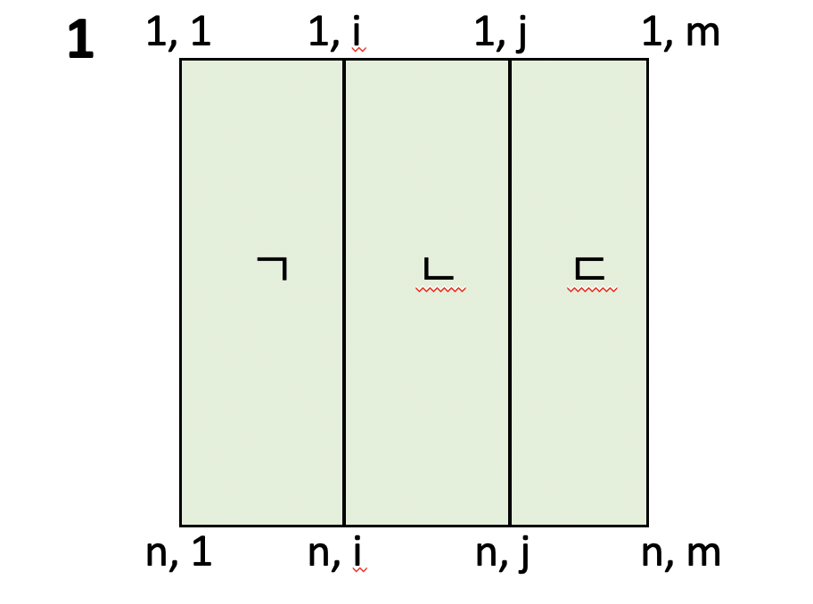 주의할 점은, i, j 모두 인덱스이기 때문에 선 위에 수가 위치하게 되는데,
