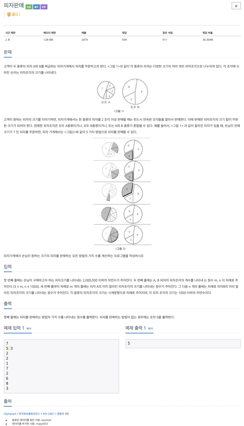 BOJ 2632번 피자판매 문제의 첫 인상이 범상치 않다. 그림이 등장하는데, 원이 나올 때부터 긴장된다.