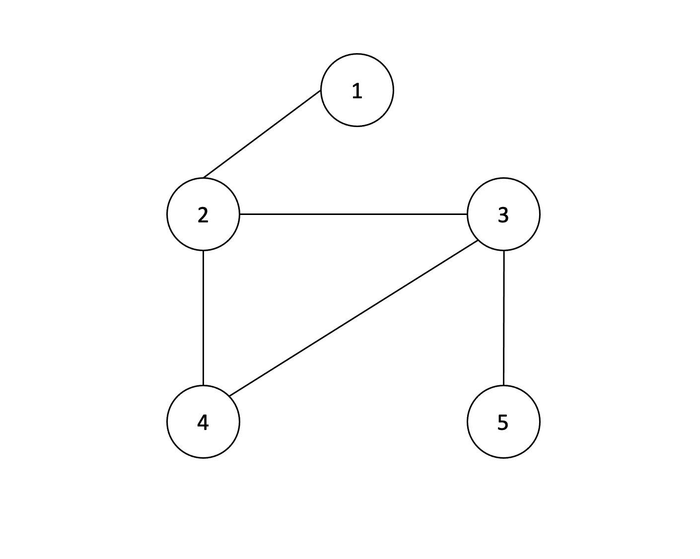 예를 들어, 예제 그래프는 아니지만 위와 같은 그래프가 있다고 하면, 1번 노드에서 부터 깊이 우선 탐색 방법으로 탐색을 시작하면서, 방문 순서를 기록해보면 [1, 2, 3, 4, 5] 순으로 방문하게 된다. (편의상 반복문을 1 ~ N 순으로 코드를 짜는 경우)