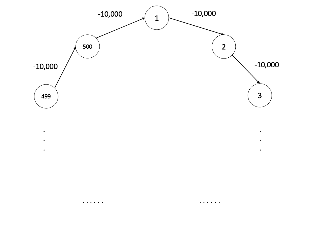 이러한 경우는 꼭 이 문제만이 아니라 음수사이클이 존재하는 경우 항상 발생할 수 있으니 벨만포드 알고리즘을 적용할 때는 이 점을 유의해야 하겠다.